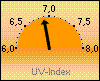 aktuell (Tendenz: -1h: 0,0 UV-I -3h: 0,0 UV-I / -6h: 0,0 UV-I) |