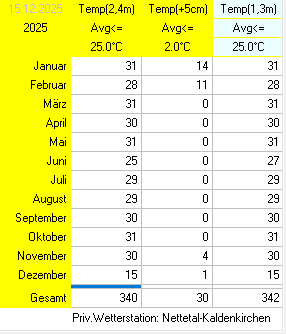 Verschiedene Tabellen der Monatsabweichungen im Jahr 2025