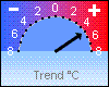 aktuell (Tendenz: -1h: -0,8 °C -3h: -3,3 °C / -6h: -7,7 °C) |