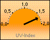 aktuell (Tendenz: -1h: 0,0 UV-I -3h: -0,3 UV-I / -6h: -2,1 UV-I) |