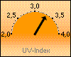 Max.(13:00) (Vorjahr: 2,6 UV-I um 12:50) |