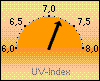 aktuell (Tendenz: -1h: 0,0 UV-I -3h: 0,0 UV-I / -6h: 0,0 UV-I) |