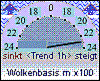 aktuell (Tendenz: -1h: 0,0 km/h -3h: +2,1 km/h / -6h: +6,2 km/h) |
