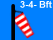 schwache Brise mit 1 - 3 Bft aus O (stark böig) |